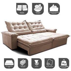 O Sofá Retrátil e Reclinável Big Fresh da Linha BIG é um modelo exclusivo que oferece encostos Mega Gigantes e assentos maiores em relação ao mercado. Ele foi desenvolvido para proporcionar charme, elegância e um conforto maravilhoso à sua sala. Sua estrutura interna resistente oferece a estabilidade necessária para este tipo de móvel, enquanto o enchimento em Espuma SoftGel D40 e Percintas Extra Suport dão o suporte necessário para o conforto. Com este sofá, você poderá maratonar séries ou descansar aos finais de semana com as pessoas que ama. Sinta-se como se estivesse em um colchão na sua própria sala com o Sofá Retrátil e ReclinávelBigFresh!