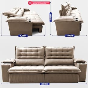Sofá Retrátil e Reclinável 2,80m de Molas Ensacadas Dream Velusoft Cama inBox