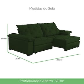 Altura: 1,12 m | Largura: 2,90 m | Profundidade Fechado: 1,20 m | Aberto: 1,80 m