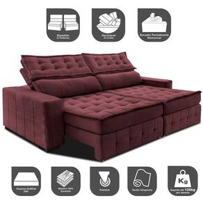 Sofá Retrátil e Reclinável 2,95m Cama inBox Big Puffer. com SoftGel D40 Velupluma - Vinho