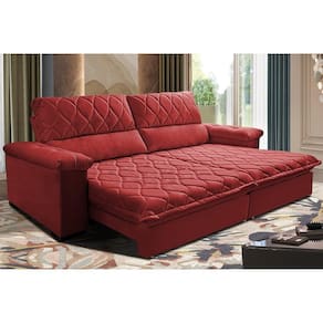 Sofá Retrátil E Reclinável 2,95m Molas Ensacadas Cama Inbox Big Home Com Bordado Velusoft Vermelho