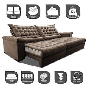 Sofá Retrátil e Reclinável 2,95m Molas Ensacadas Cama inBox Big Space. com Bordado 3D Velusoft - Palha