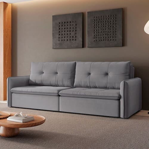 Produto feito com madeira de reflorestamento e revestido com Linho 100% poliéster. No assento, além da espuma D28 temos também manta de fibra de silicone. O encosto possui enchimento de fibra de silicone. Possui pés de madeira maciça. Produto Montado: Sim Acompanha Almofadas extras: Não Almofada do assento: Fixa Almofada do encosto: Removível Altura do assento até o chão: 46.0000 Altura do Encosto: 51 cm Ambiente Principal: Sala de Estar codigo_ean: 7900288221445 Complexidade da Montagem: Baixa: pode ser montado por uma pessoa sozinha Cor: Cinza Cor do Produto: Cinza Densidade do Assento: D-28 Enchimento do Assento: Espuma Estilo de Braço: Braços Redondos Firmeza do Assento: Macio Informações Complementares: Pillow nos assentos com 16 cm de Espuma Contínua S/A D28 Supersoft; Assentos retráteis com mecanismo metálico + molas de aço; Encostos reclináveis em 3 posições diferentes + almofadas soltas com enchimento de fibra de silicone; Itens Inclusos: 1 Sofá e Kit Ferragens Linha ou Coleção: Braga Marca: Estofart Material dos Pés: Madeira Montagem Flex: Não Necessita Montagem: Sim Nível de Conforto: Intermediário Origem do Produto: Nacional Peso: 76 kg Pet Friendly: Não Possui Mola: Sim Possui Percintas Elásticas: Sim Possui Pés: 08 Possui Rodízio: Sim Profundidade Quando Estendido: 150 cm Profundidade quando extendido: 150.0000 Recomendações de Uso, Manutenção e Limpeza: - Não expor ao sol ou fonte de calor; Não utilizar produtos de limpeza como detergente, álcool, solventes, ou produtos químicos; Para a limpeza, utilizar pano umedecido em água, sabão neutro e escova de cerdas macias, deixando secar a sombra. Em caso de excesso de poeira, usar aspirador de pó; Não provocar tensões desproporcionais no assento do sofá, provocadas pro quedas ou pulos; Evitar contatos com animais; Preservar o produto de objetos aquecidos ou pontiagudos; Mantê-lo em local arejado; Não arrastar o sofá pelos braços; Transportar com o máximo de cautela. Rodízio com Trava: Não Sistema de Montagem: Parafusação dos pés na base do sofá e união entre os módulos por engate metálico Suporta Até (kg): 100 kg Tecido Impermeável: Não Tecido Predominante: Linho Tipo de Encosto: Regulável Tipo de Mola: Molas Espirais Tipo de Sofá: Sofá Comum Marca: Não Informado