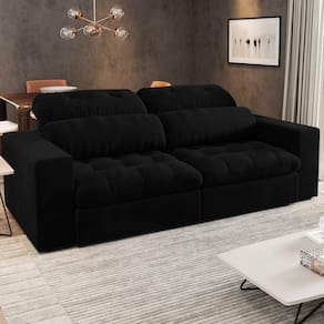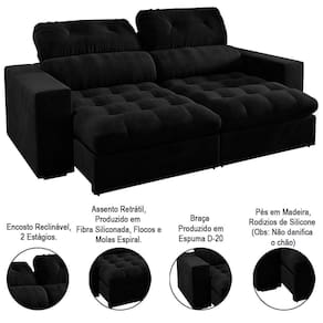 Esse modelo consegue reunir todas as características indispensáveis para um bom sofá. O sistema retrátil e reclinável cria uma experiência de comodidade e aconchego, ainda mais depois de um dia cansativo no trabalho ou na . Quando abertos os assentos ficam com 142cm e fechados com 95cm.