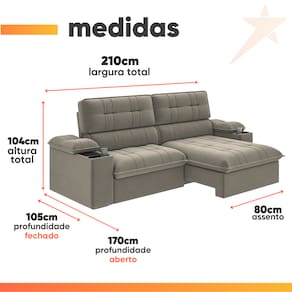 MODELO: Sofá Retrátil e Reclinável 3 Lugares 2,10m c/ Porta Copos Slim