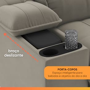 O sofá une conforto, funcionalidade e estilo em um só móvel. Com design moderno, é retrátil e possui encosto reclinável em 3 estágios, que permite ajustar a inclinação conforme a sua preferência, ideal para relaxar, assistir TV ou descansar com ainda mais conforto. Sua estrutura é feita em madeira reflorestada, garantindo maior vida útil e durabilidade. O assento e o encosto possuem espuma de alta qualidade e percintas elásticas, oferecendo suporte firme e confortável, enquanto braços e encosto são preenchidos com fibras e flocos, proporcionando maciez e aconchego. Para mais praticidade, o braço direito conta com um cooler embutido de 5 litros, ideal para manter suas bebidas sempre geladas, e porta-copos em ambos os braços, ao alcance da sua mão sem precisar sair do lugar. Os pés em PVC oferecem estabilidade, e os rodízios de silicone facilitam a movimentação sem riscar o piso. Este sofá é a escolha certa para quem busca um sofá resistente, moderno e com conforto premium para o uso diário.