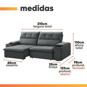 TIPO DE SOFÁ: Retrátil e reclinável com porta copos, e 5 estágios de inclinação