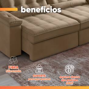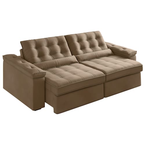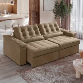 Sofá Retrátil e Reclinável 3 Lugares 2,12m Veludo Ilhéus - Bege Médio