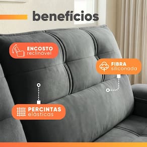 TIPO DE SOFÁ: Retrátil e reclinável com porta copos, com 5 estágios de inclinação