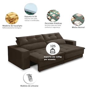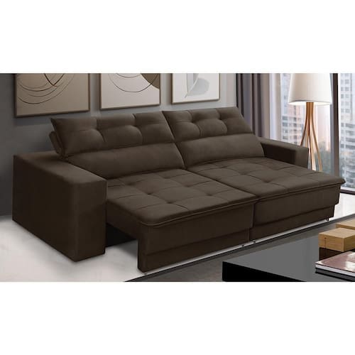 Sofá Emily, um sofá retrátil e reclinável combina conforto e versatilidade em um só móvel, perfeito para relaxar e ajustar conforme sua preferência.