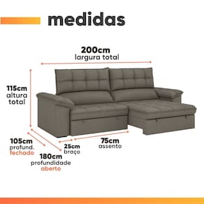 MODELO: Sofá Retrátil e Reclinável 3 Lugares 2m Monique