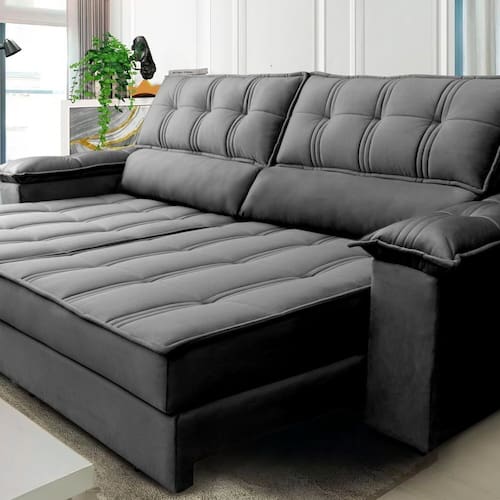 Aprimore seus momentos de descanso com a combinação perfeita de espuma D28, fibra siliconada e flocos de espuma. Cada camada foi cuidadosamente selecionada para proporcionar um suporte ideal para o seu corpo, garantindo uma sensação de maciez e suavidade que você não vai querer deixar. Produto Montado: Sim Acompanha Almofadas extras: Não Almofada do assento: Fixa Almofada do encosto: Fixa Altura do assento até o chão: 0.4500 Altura do Encosto: 116 cm Altura dos Pés: 3 cm Ambiente Principal: Sala de Estar codigo_ean: 7909903676899 Complexidade da Montagem: Baixa: pode ser montado por uma pessoa sozinha Cor: Platinum Grafite Cor do Produto: Platinum Grafite Densidade do Assento: D-28 Enchimento do Assento: Espuma Enchimento do Encosto: Espuma Firmeza do Assento: Firme Itens Inclusos: Não Material dos Pés: PVC Necessita Montagem: Sim Peso: 120 kg Pet Friendly: Não Possui Percintas Elásticas: Sim Possui Pés: 08 Possui Rodízio: Sim Profundidade Quando Estendido: 175 cm Recomendações de Uso, Manutenção e Limpeza: Para remover poeira e sujeira do estofado, utilize um aspirador de pó com o acessório de escova. Em caso de derramamento de líquidos, limpe imediatamente com um pano limpo e seco, evitando esfregar para não espalhar a mancha.Para manchas mais difíceis, utilize um detergente neutro diluído em água morna e aplique suavemente com um pano macio. Em seguida, remova o excesso com um pano úmido e seque completamente.Considere o uso de capas protetoras ou mantas para proteger o estofado contra derramamentos e sujeira, especialmente se tiver animais de estimação ou crianças em casa. Evite expor o estofado à luz solar direta ou fontes de calor excessivo, pois isso pode causar descoloração ou danos ao tecido. Rodízio com Trava: Sim Sistema de Montagem: Manual Suporta Até (kg): 120 kg Tecido Predominante: Veludo Tipo de Encosto: Regulável Tipo de Mola: Molas Ensacadas