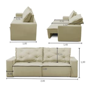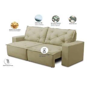 Assento: Feito com espuma D-28 com percintas elásticas de 5mm e Molas, o assento é retrátil que permite você utilizar o sofá com as pernas esticadas e ter todo o conforto que ele possa te proporcionar.