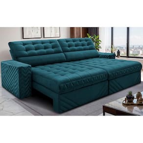 Sofá Retrátil e Reclinável 3,00m Molas Ensacadas Max Spring. Velusoft Cama inBox
