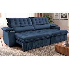Sofá Retrátil E Reclinável 3,10m Molas Ensacadas Dream. Velusoft Cama Inbox Azul