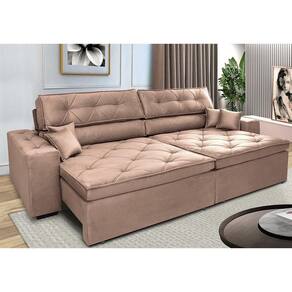 Sofá Retrátil e Reclinável 3,12m Cama inBox Estilo. Suede - Palha