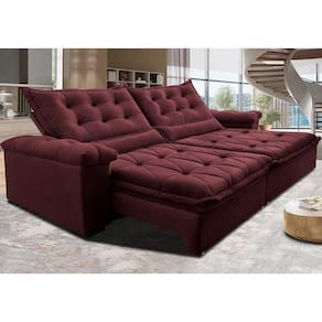 Sofá Retrátil E Reclinável 3,15m Cama Inbox Big Fresh Com Softgel D40 Velupluma Vinho