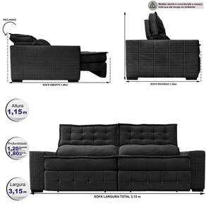 Sofá Retrátil e Reclinável 3,15m Cama inBox Big Puffer. com SoftGel D40 Velupluma - Preto