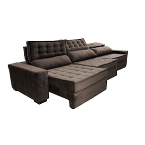 Sofá Retrátil E Reclinável 3,55m Cama Inbox Big Star Com Softgel D40 Velupluma Café