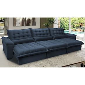 - A Cama inBox fica responsável pelo transporte e entrega do produto adquirido até a porta de entrada ou portaria do cliente. Após a conclusão da entrega no endereço solicitado, o transporte até o local de uso ficará sob responsabilidade do cliente, caso neste momento haja problemas ou danos no produto, ficará a cargo do mesmo. OBS.: As transportadoras NÃO SOBEM escadas ou elevadores. Tipo do Sofa: Retrátil e Reclinável | É sofá de canto: Não | É sofá-cama: Não | Encosto Reclinavel: Sim | Assento Retratil: Sim | Cor: Azul | Tonalidade: Azul | Cor Pincipal: Azul | Cor Via: Azul Marinho | Desenho do tecido: Liso | Acessórios incluídos: Não possui | Fabricante: Cama inBox | Quantidade de Lugares: 7 | Peso do Produto: 120 | Altura: 112 | Largura: 382 | Profundidade: 127 | Material do estofado: Madeira Reflorestada, Espuma, Tecido | Estilo: Moderno | Complexidade de Montagem: Média: pode ser montada por mais de uma pessoa leiga | Tempo Estimado de Montagem: 30 | Produto: Sofá | Comodo indicado: Salas | Custo da Manutenção: Baixo | Conservação e Manutenção do Produto: Para maior durabilidade, recomendamos que a limpeza dos estofados com revestimento em tecido, seja feito com aspirador de pó em baixa rotação ou escova com cerdas macias para a eliminação de poeira e pano úmido em água. Não utilizar agentes químicos! | Condição do item: Novo | É kit: Não | Complexidade de Montagem Via: Fácil de Montar | Quantidade de Lugares Via: Acima de 4 Lugares | Material para Filtro: Mola | Estado de Origem: PR | Nome do Simples no Fornecedor: Cama inBox | Altura do Produto com Embalagem: 112 | Peso Produto Com Embalagem: 120 | Largura Produto Com Embalagem: 382 | Comprimento Produto Com Embalagem: 127 | Descrição do Tamanho: 7 | Montagem Necessária: Sim, instalação dos pés | Conteúdo do produto: 1 sofá | Instruções do produto: Para maior durabilidade, recomendamos que a limpeza dos estofados com revestimento em tecido, seja feito com aspirador de pó em baixa rotação ou escova com cerdas macias para a eliminação de poeira e pano úmido em água. Não utilizar agentes químicos!