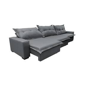 Sofá Retrátil E Reclinável 3,82m Com Molas Ensacadas Cama Inbox Prime Tecido Linho Cinza Escuro