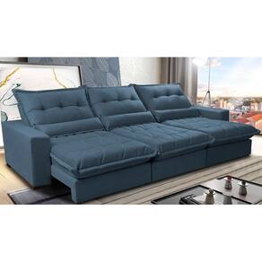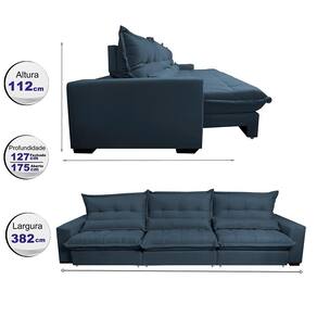 Sofá Retrátil e Reclinável 3,82m com Molas Ensacadas Cama Inbox Soft Tecido Suede Velusoft Azul - Azul Marinho