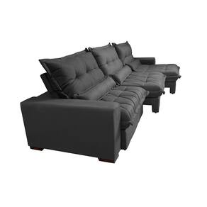 Sofá Retrátil E Reclinável 3,82m Com Molas Ensacadas Cama Inbox Soft Tecido Suede Velusoft Preto Chegou o Maravilhoso Sofá Retrátil e Reclinável Cama inBox Soft com Molas Ensacadas. O que o torna especial são seus assentos com 429 MOLAS ENSACADAS e espuma D33 Soft envolvidas em fibra Siliconada Compactada para que tenha um toque gostoso e aconchegante, produto com espumas + molas + mantas de fibra siliconadas. Bordado especial em alto relevo com espuma Visco látex, designer com puxes que o embelezam, proporcionando conforto de um colchão em um Belíssimo Sofá. Sua sala jamais será como antes! Características: -Encosto Reclinável com 5 posições, almofadas fixas compostas de 80% fibra siliconada e 20% flocos de espuma e percintas elasticas para maior conforto. -Assentos: Retráteis com espuma D33 soft envolvidas em fibra SILICONADA compactada, Molas ensacadas, percintas Pneumáticas com feltro para proteger do atrito com as molas. -Braços: Com 25cm de largura e com espuma D33. -Fixação: Grampos galvanizados. -Estrutura de Madeira maciça 100% eucalipto de reflorestamento, produto ecologicamente correto. -Tecido suede com toque macio. -Pés em PVC.