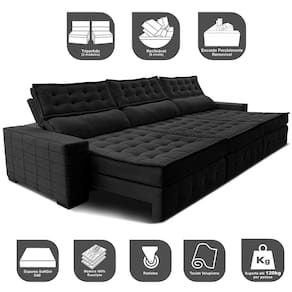 Sofá Retrátil e Reclinável 3,85m Cama inBox Big Puffer. com SoftGel D40 Velupluma - Preto
