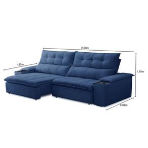 O Sofá Bulgária, é perfeito para promover aconchego e bem-estar, um modelo estruturado com madeira de eucalipto, revestido em veludo, com pés em madeira, rodízios de silicone e encosto reclinável por meio de catraca de 5 estágios, composto por fibra siliconada. Um móvel que abraça com a maciez do veludo que só o Sofá Bulgária pode oferecer. Graças ao seu design, ele é perfeito para trazer o charme que falta ao seu lar, possui braços retráteis com porta objetos, composto por espuma D-20, excelente para acomodar seus familiares e amigos. E para melhorar conte com seu assento retrátil em tubo composto por espuma D-26, um modelo que faz toda a diferença e proporciona todo conforto merecido. Acompanha Almofadas extras: Não Almofada do assento: Fixa Almofada do encosto: Fixa Altura do assento até o chão: 50 Altura do Encosto: 65 Altura dos Pés: 3 Ambiente Principal: Sala de Estar Complexidade da Montagem: Baixa: pode ser montado por uma pessoa sozinha Cor: Azul Cor do Produto: Azul Densidade do Assento: D-26 Densidade do Encosto: Camadas de Densidades Diferentes Enchimento do Assento: Espuma Enchimento do Encosto: Fibra Siliconada Estilo de Braço: Braços Quadrados Firmeza do Assento: Médio Informações Complementares: ESTRUTURA: Madeira de lei (Eucalipto) devidamente tratada e aparelhada com reforços e cantoneiras e chapas em MDF.ENCOSTO: Reclinável por meio de catraca metálica de 5 estágios, composto por 100% de fibra siliconada.ASSENTO: Retrátil em tubo, composto por Itens Inclusos: 1 Sofá e Manual de Instruções Linha ou Coleção: Retrátil e Reclinável, com porta copos e objetos Material dos Pés: Madeira Montagem Flex: Não possui Necessita Montagem: Sim Origem do Produto: Nacional Peso: 80 Pet Friendly: Não Possui Percintas Elásticas: Sim Possui Pés: 05 Possui Rodízio: Sim Profundidade Quando Estendido: 137 Recomendações de Uso, Manutenção e Limpeza: Para remoção de poeira, utilizar aspirador de pó em velocidade baixa ou escova com filamentos ultra macios. Para a remoção de líquidos e sujeira derramados de forma acidental, retirar delicadamente sem comprimir o tecido, utilizando pano limpo ou papel absorvente. Não é recomendado utilizar produtos de limpeza domésticos. Para evitar a alteração na cor do revestimento, o estofado não deverá ser exposto ao sol ou a alta luminosidade. Evite o contato do estofado com objetos cortantes, perfurantes e pontiagudos. Para movimentar o estofado de forma correta, levante-o segurando por baixo. Resistente à Chuva: Não Revestimento do Braço: Veludo Rodízio com Trava: Não Sistema de Montagem: Rosqueamento dos pés e encaixe dos encostos Suporta Até (kg): 100 Tecido Predominante: Veludo Tipo de Encosto: Regulável Tipo de Mola: Molas Ensacadas (Molas ensacadas) Ean: 7909903440544