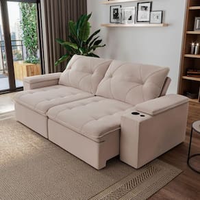 Importante sobre a entrega: A entrega é realizada até a portaria ou porta de entrada do endereço indicado, desde que o acesso seja permitido. Para locais com portaria, a entrega será feita no piso térreo. Não realizamos montagem, desmontagem, transporte por escadas ou içamento. É responsabilidade do cliente verificar se as dimensões do produto são compatíveis com portas, elevadores e corredores. Evite imprevistos: confira todos os detalhes antes de concluir sua compra. MEDIDAS:: A = 105 cm L = 252 cm P = 142 cm (Aberto) / 102 cm (Fechado) | PESO SUPORTADO POR ASSENTO:: 130 kg | PESO:: 86 kg | MODELO:: Sofá Retrátil e Reclinável 4 Lugares 2,52m C/ Porta Copos Entrada USB Veludo San Diego | MARCA:: Bex's Estofados | MATERIAL DA ESTRUTURA:: Madeira de reflorestamento oferecendo resistência, durabilidade e qualidade | TIPO DE SOFÁ:: Retrátil e Reclinável | MOLAS:: Molas ensacadas, garantindo maior conforto e sustentação | MATERIAL DO ASSENTO:: Espuma de alta qualidade | DENSIDADE DA ESPUMA:: HR26, firme e confortável, dentro dos padrões ABNT | QUANTIDADES DE LUGARES:: 4 lugares | MATERIAL DO ENCOSTO:: Fibra de silicone, macia e aconchegante | PERCINTAS:: Italianas (Encosto), oferecendo mais resistência e conforto | TECIDO DO SOFÁ:: Veludo, elegante e sofisticado | POSSUI ENCOSTO REMOVÍVEL:: Sim, facilitando a limpeza | MATERIAL DO BRAÇO:: Espuma macia para apoio confortável | MATERIAL DOS PÉS:: Plástico resistente | QUANTIDADES DE PÉS:: 8 | POSSUI RODÍZIOS:: Sim, que facilitam a movimentação | DIFERENCIAL:: Braços deslizantes com porta copos e carregador USB / Assento retrátil com molas ensacadas e espumas HR26 / Encosto ajustável em 3 posições / Almofadas e braços em espuma e fibra de silicone | INSTRUÇÕES E CUIDADOS:: Utilizar pano úmido ou aspirador de pó. Não utilizar produtos abrasivos. | GARANTIA:: 3 Meses. | AVISO:: Importante sobre a entrega: A entrega é realizada até a portaria ou porta de entrada do endereço indicado, desde que o acesso seja permitido. Para locais com portaria, a entrega será feita no piso térreo. | Inclui manual de montagem: Sim | Quantidade de caixas de embalagem: 1 | Requer montagem: Sim | É kit de fábrica: Não | Cor: Off White