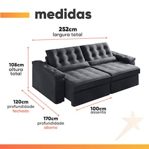 MODELO: Sofá Retrátil e Reclinável 4 Lugares 2,52m Veludo Ilhéus