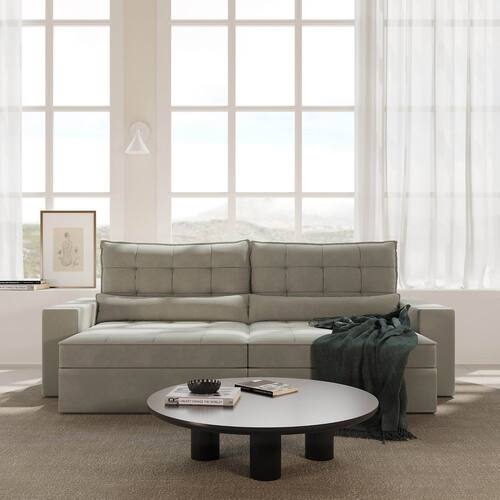 Os estofados retráteis Embaúba Extra combinam linhas econômicas e um design robusto, sem excessos, perfeito para uma sala de estar ou home cinema com um estilo moderno e sofisticado, proporcionando conforto para toda a família. Com suas medidas amplas, são ideais para acomodar todos com comodidade. Com uma ampla variedade de cores, esses estofados se adaptam a diferentes estilos de decoração. Além disso, oferecem opções de cores em tecido de veludo fosco de fácil limpeza com resistência a manchas. O encosto possui uma catraca blindada de 7 estágios de reclinação, preenchida com 100% de fibra siliconada. A estrutura, feita de eucalipto reflorestado, oferece excelente resistência e durabilidade.