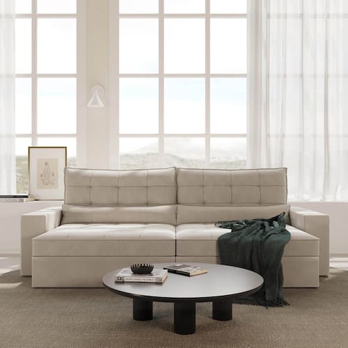 Os estofados retráteis Embaúba Extra combinam linhas econômicas e um design robusto, sem excessos, perfeito para uma sala de estar ou home cinema com um estilo moderno e sofisticado, proporcionando conforto para toda a família. Com suas medidas amplas, são ideais para acomodar todos com comodidade. Com uma ampla variedade de cores, esses estofados se adaptam a diferentes estilos de decoração. Além disso, oferecem opções de cores em tecido de veludo fosco de fácil limpeza com resistência a manchas. O encosto possui uma catraca blindada de 7 estágios de reclinação, preenchida com 100% de fibra siliconada. A estrutura, feita de eucalipto reflorestado, oferece excelente resistência e durabilidade.