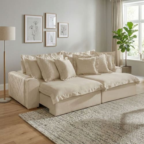 Estrutura em eucalipto reflorestado, pés em madeira maciça, revestimento em linho.Vendido e entregue por MadeiraMadeira