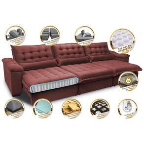 Sofá Retrátil e Reclinável 4,12m com Molas Ensacadas Cama inBox Aconchego. Tecido Velusoft - Vermelho