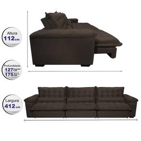 Sofá Retrátil e Reclinável 4,12m com Molas Ensacadas Cama inBox Aconchego. Tecido Velusoft - Marrom