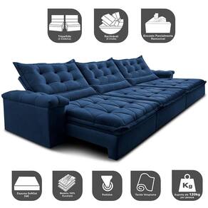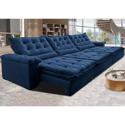 Sofá Retrátil e Reclinável 4,15m Cama inBox Big Fresh. com SoftGel D40 Velupluma - Azul Marinho