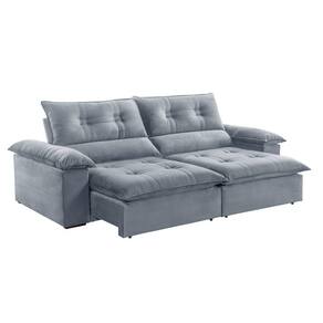 Sofá Retrátil e Reclinável Atenas 2,10m 03 Lugares Mola Ensacada TXR - Prata