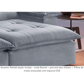Assento: Retrátil de duplo molejo - mola Bonnel + percinta tipo Italiana + Pillow de molas ensacadas com espuma D28