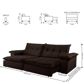 Dimensões: Altura: 112 cm Largura: 230 cm Profundidade Fechado: 120 cm Profundidade Aberto: 180 cm -com encosto reclinado- Peso: 97 kg