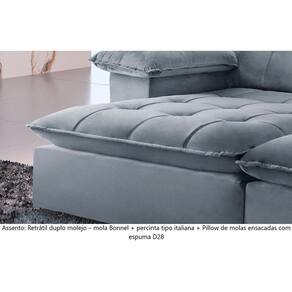 Características: Marca: TXR Modelo: Atlanta Tipo: Sofá 4 lugares Retrátil e Reclinável Estrutura: Madeira de origem certificada, Eucalipto Revestimento: Tecido Veludo Pés: Madeira Reflorestada Assento: Retrátil de duplo molejo - mola Bonnel + percinta tipo Italiana + Pillow de molas ensacadas com espuma D28 Encosto: Reclinável em 5 estágios, 100 fibra de silicone Braços: 25 cm com pillow 100 fibra de silicone Retrátil e Reclinável: Com mecanismo em aço