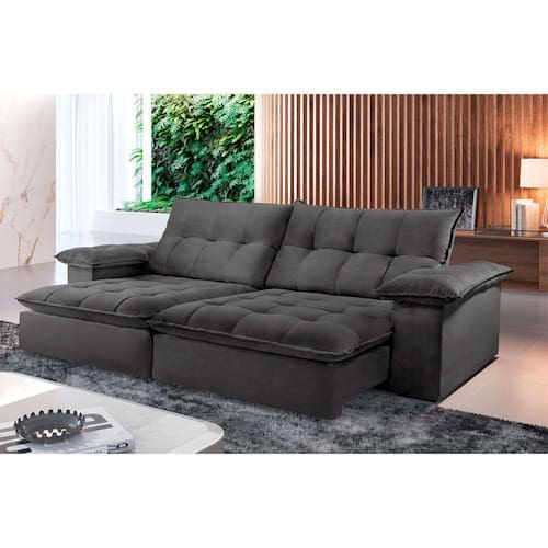 Características: Marca: TXR Modelo: Atlanta Tipo: Sofá 5 lugares Retrátil e Reclinável Estrutura: Madeira de origem certificada, Eucalipto Revestimento: Tecido Veludo Pés: Madeira Reflorestada Assento: Retrátil de duplo molejo - mola Bonnel + percinta tipo Italiana + Pillow de molas ensacadas com espuma D28 Encosto: Reclinável em 5 estágios, 100 fibra de silicone Braços: 25 cm com pillow 100 fibra de silicone Retrátil e Reclinável: Com mecanismo em aço