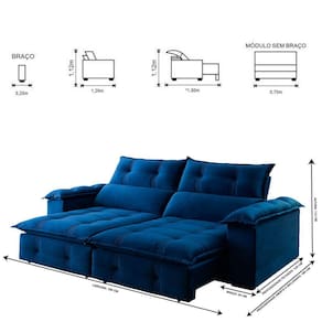 Sofá Retrátil e Reclinável Atlas 1,80m 02 Lugares Mola Ensacada TXR - Azul Doce