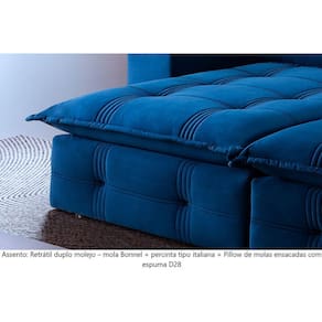 Assento: Retrátil de duplo molejo - mola Bonnel + percinta tipo Italiana + Pillow de molas ensacadas com espuma D28