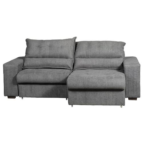 Estofado retratil com abertura de 156cm e encosto reclinavel com 5 estagios de elevacao, estofado com espumas certificadas pelo INMETRO e acabamento em tecido boucle com excelente acabamento e designer moderno.