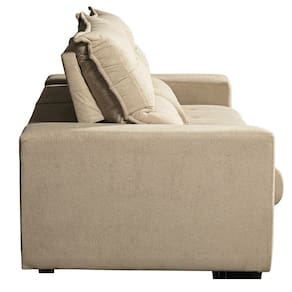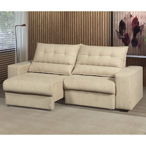 Estofado retratil com abertura de 156cm e encosto reclinavel com 5 estagios de elevacao, estofado com espumas certificadas pelo INMETRO e acabamento em tecido boucle com excelente acabamento e designer moderno.