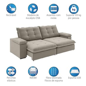 Está em busca de um sofá confortável, bonito e espaçoso? O Sofá Retrátil e Reclinável Fofão é a escolha ideal! Com design sofisticado que combina com qualquer ambiente, ele oferece máximo conforto graças às Molas Bonnel, ao tecido Slim de toque macio e às percintas elásticas, que proporcionam sustentação e flexibilidade na medida certa. A base conta com pés em PVC e rodízios de silicone, garantindo praticidade no dia a dia, além de suportar até 120 kg por pessoa. O encosto removível facilita o e a instalação em espaços menores. Perfeito para relaxar ou reunir a família e os amigos com muito mais conforto!