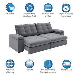 Está em busca de um sofá confortável, bonito e espaçoso? O Sofá Retrátil e Reclinável Fofão é a escolha ideal! Com design sofisticado que combina com qualquer ambiente, ele oferece máximo conforto graças às Molas Bonnel, ao tecido Slim de toque macio e às percintas elásticas, que proporcionam sustentação e flexibilidade na medida certa. A base conta com pés em PVC e rodízios de silicone, garantindo praticidade no dia a dia, além de suportar até 120 kg por pessoa. O encosto removível facilita o e a instalação em espaços menores. Perfeito para relaxar ou reunir a família e os amigos com muito mais conforto!