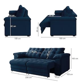MEDIDAS:: [ A ] = 100 cm [ L ] = 230 cm [ P ] = 105 cm / 180 cm com o produto montado aberto (retrátil) | QUANTIDADE DE PÉS:: 4 pés e 4 rodízios pretos de alta durabilidade | PESO:: 70 kg | SUPORTA ATÉ:: 130kg por assento | MODELO:: Sofá Retrátil e Reclinável Bipartido 3 Lugares 2,30m Veludo Coliseu Selmer | MARCA:: Selmer | ESTRUTURA:: Madeira de Eucalipto | TECIDO:: Suede Veludo | PERCINTAS:: Elásticas | ENCOSTO:: Fixo e Reclinável | ASSENTO:: Retrátil | ESPUMA DO ASSENTO:: D23, revestida com Manta Acrílica | MATERIAL DOS PÉS:: Plástico | GARANTIA:: 3 meses | VALE A PENA SABER:: A tonalidade de cor pode variar de acordo com o lote do fabricante. | INSTRUÇÕES E CUIDADOS:: Para maior durabilidade, recomendável que a limpeza dos móveis seja feita com pano limpo e levemente umedecido em água e sabão neutro. Em seguida, deverá ser passado um pano limpo e seco. | AVISO:: A Esplanada Móveis se responsabiliza pela dos produtos adquiridos até a porta de entrada ou portaria do endereço indicado, se a portaria do condomínio permitir, as s são efetuadas no piso térreo e é de responsabilidade do cliente a locomoçã | ALTURA:: 100cm | PRODUTO:: Sofá Retrátil e Reclinável | LUGARES:: 3 | TONALIDADE:: Azul Escuro | COR:: Azul | TIPO DE SOFÁ:: Retrátil e Reclinável Cor: Azul Folha