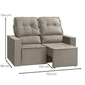 Dimensoes do Produto: Largura: 150 cm Altura: 104 cm. Profundidade: 98 cm. Altura do chao ao assento: 45 cm Largura do Braco: 15 cm Medidas Internas do Assento: 120 x 55 cm Peso: 46 KG